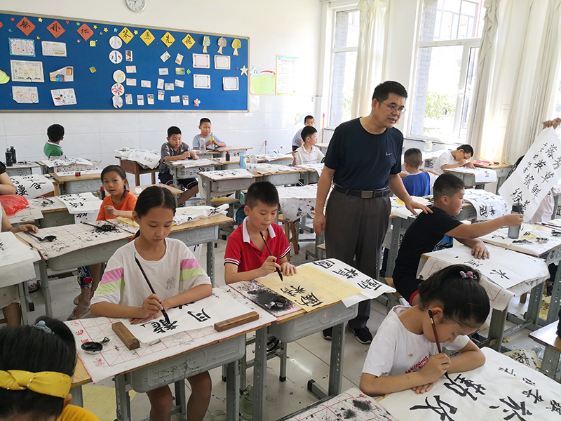 前期,根据疫情防控形势,我校教师采取线上教学的方式,为学生们开设书法和声乐课程,在两所学校设立教学实践基地。本次暑假期间,在临朐县教体局的协调下,我校美术学院和音乐学院负责同志及专业骨干教师放弃假期休息的时间,为暑期托管的孩子们进行了两期、每期各10天的艺术指导活动。开设书法、绘画、声乐、舞蹈、中考美术音乐辅导课程,共计授课720学时,同时为学生提供全部学习用品和器材,组织专业教师创作艺术作品,服务校园文化建设。活动以点及面, 辐射带动周边10 所以上的 中小学校。