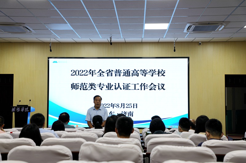 会议旨在加强师范类专业建设,顺利推进师范类专业第二级认证各项工作,提高师范生培养质量。山东省教育厅副厅长孙晓筠出席会议并讲话,山东省教育科学研究院党委书记、院长申培轩部署全省师范类专业认证工作。会议邀请教育部师范类专业认证专家作了主题报告,并组织相关高校针对师范类专业认证工作进行了经验交流。