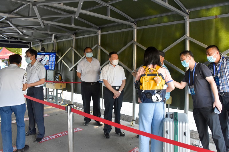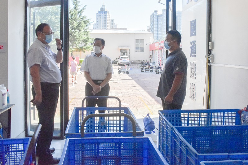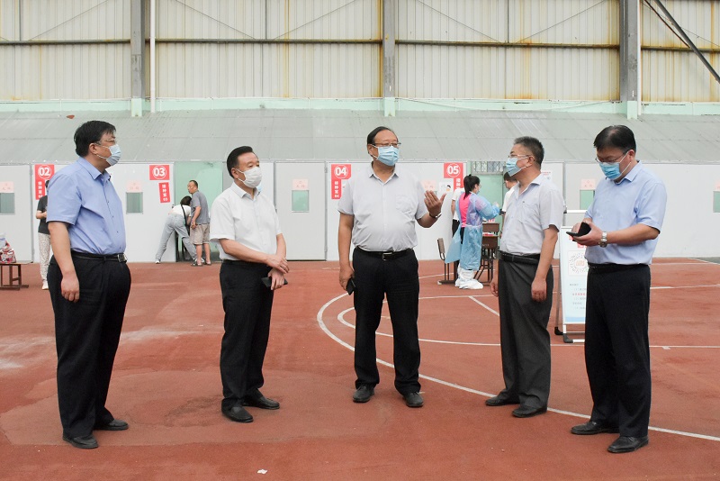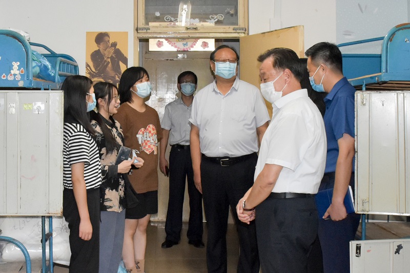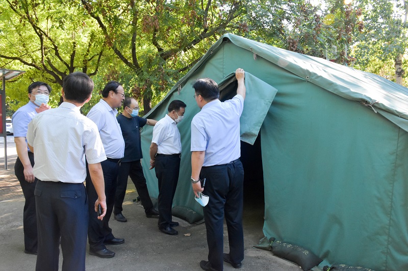 本网讯 8月27日,学校领导李东、冯滨鲁到三号教学楼、疫情防控物资储备仓库、快递中心、学生餐厅、学生公寓、北门、风雨操场核酸检测现场等,对开学各项准备工作进行了检查。