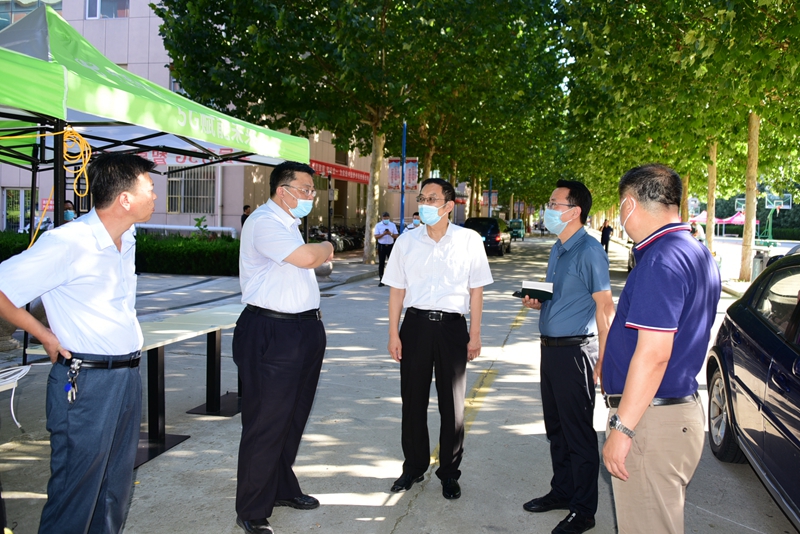 在大门口,王旭升现场观看了安保队员的入校检查规定动作:测温、场所码扫描、核酸检测结果查验、行程卡查验。在与第三方人员交谈时,王旭升询问了他们在学校的工作生活情况,感谢他们对学校发展做出的贡献,强调在当前国内疫情多点暴发的情况下,要减少外出接触、确保核酸检测一天一检。