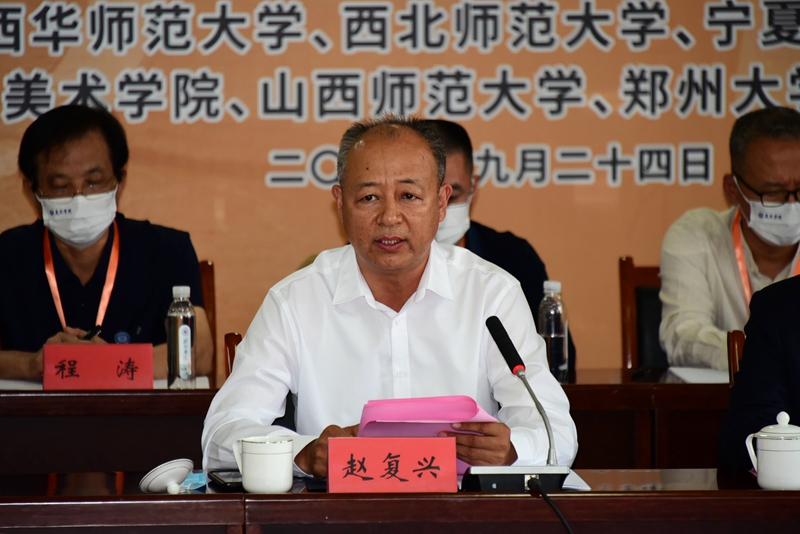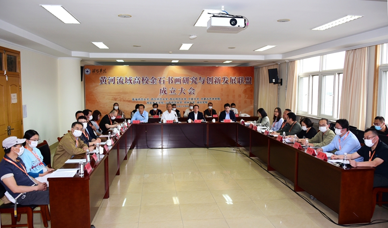 本网讯 9月24日,由我校倡议,青海师范大学、西华师范大学、西北师范大学、宁夏大学、内蒙古艺术学院、西安美术学院、山西师范大学、郑州大学和潍坊学院等9所高校共同参与的黄河流域高校金石书画研究与创新发展联盟(以下简称联盟)成立大会在我校召开。大会采取线上线下结合的方式举办,各联盟高校设立分会场。