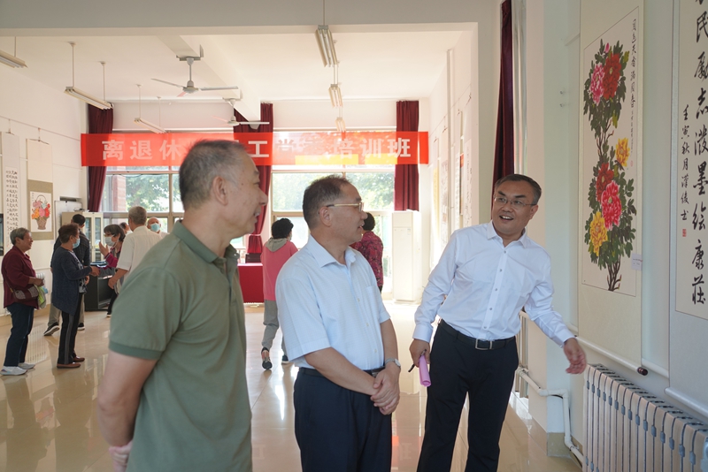开展仪式前,马茜华与前来参加活动的市委老干局二级调研员李志民进行了工作交流,并参观了潍大花园活动场所。离退休教职工党委各支部的代表、参展作品的作者参加了本次活动。