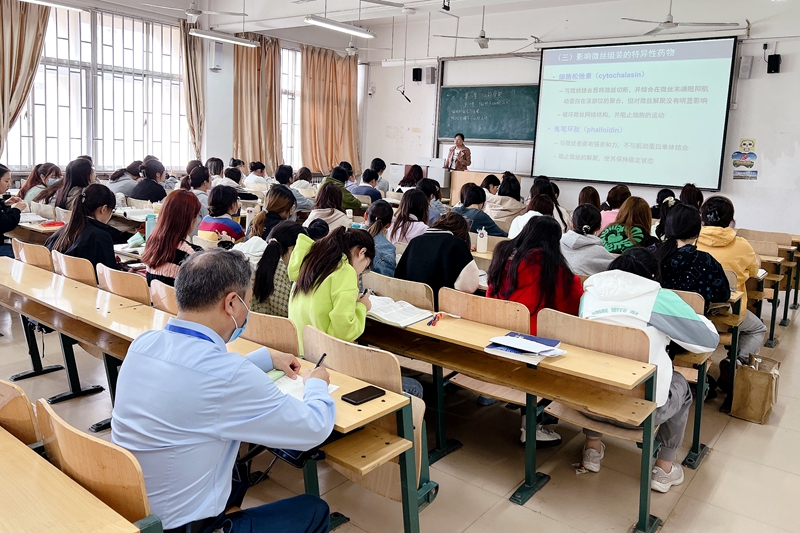 在8号教学楼8521教室,李连成听取了刘慧莲老师的《细胞生物学》课程,课堂中,李连成对教师教学内容、教学方法以及学生的学习状态等方面进行了详细记录。