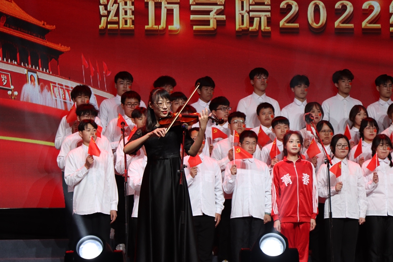 比赛在歌尔科技产业学院演唱的《我爱你中国》中拉开帷幕,一句句“我爱你中国”,直击在场每一位观众的心灵。在这场视听盛宴里,各二级学院的风采与特色都被展现得淋漓尽致,不仅有嘹亮的歌声,也有舞蹈、武术、打鼓等多种形式创意融合其中。一首《映山红》忆曾经,红军走遍山野;一首《万疆》观灯火,勾勒山河无恙;一首《我们都是追梦人》迎时代,让梦想飞扬。伴随着音乐学院学子的歌舞,在《复兴的力量》的旋律中,回顾百年征程。铿锵有力的歌声回荡在学校上空,潍院学子们以歌咏志,唱响了爱国主旋律,以精彩的青春乐章献礼党的二十大,展现了青年学子青春昂扬的精神风貌和爱党爱国的坚定信念。
