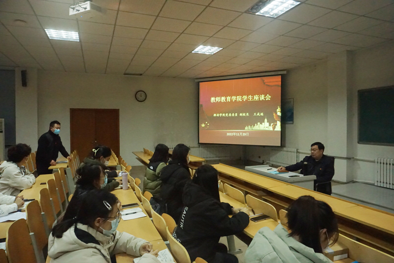 本网讯 为深入了解安顺校区相对封闭管理期间学生们的学习、工作、生活情况,11月29日下午,学校党委委员、副校长王成端在教师教育学院(特教幼教师范学院)召开学生座谈会,与同学们进行深入交流。