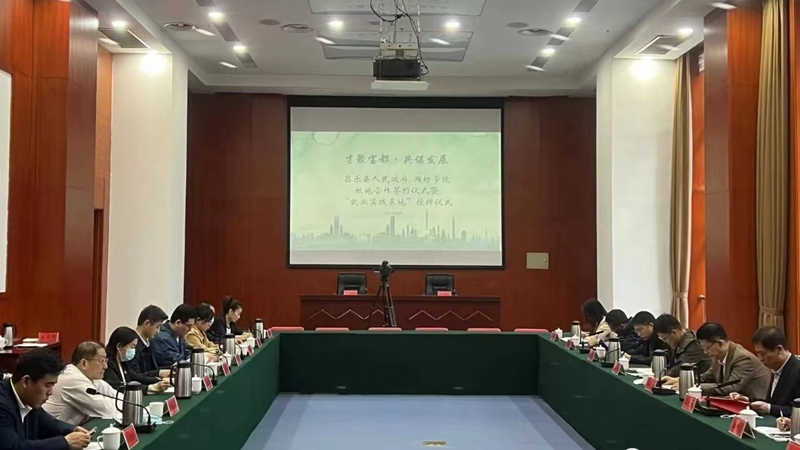 郭雪梅对王建新一行的到访表示热烈欢迎,并对潍坊学院长期以来助力昌乐县实现高质量发展贡献的“潍院力量”表示感谢,同时简要介绍了昌乐县特有的区位优势、良好的产业基础、充足的要素保障、丰富的资源条件、厚重的文化底蕴和优美的生态环境,表达了在现有合作基础之上,与潍坊学院进一步深入推进校地合作的强烈愿望。