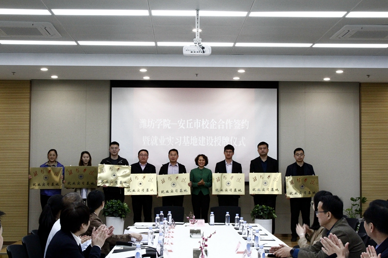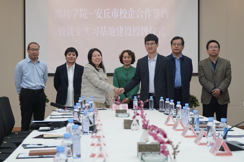 在签约仪式上,王晓丽对徐梅一行表示热烈欢迎,并介绍了安丘的基本情况和引才政策,表达了与学校进一步推进校地合作的愿望。徐梅介绍了学校发展的基本情况,重点介绍了经济管理学院人才培养和毕业生就业工作情况,她表示经济管理学院专业设置与安丘产业结构非常契合,双方有很好的合作基础,希望校地合作以协议签署为标志,结出更多硕果。