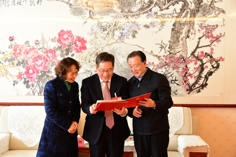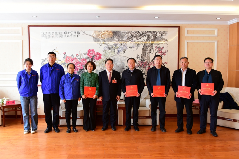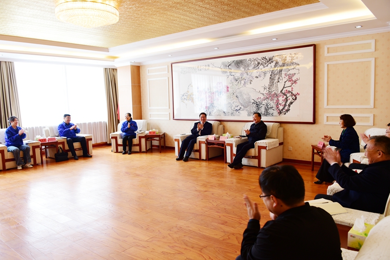 本网讯 3月17日,党委书记李东会见我校参加十四届全国人大一次会议的全国人大代表、天瑞磁悬浮产业学院李永胜教授并进行座谈,党委副书记徐梅,党委委员、副校长王成端出席座谈会。