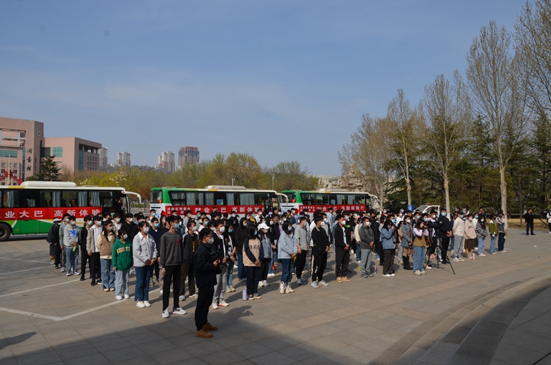 本次活动分启动仪式和参观体验两个环节。启动仪式在我校行政楼后广场举行。启动仪式结束后,4辆大巴分两条路线,分别搭载生物与海洋学院、化学化工与环境工程学院、机械与自动化学院、经济管理学院和外国语学院共计160余名毕业生走进高新区生物园和部分企业进行参观体验。