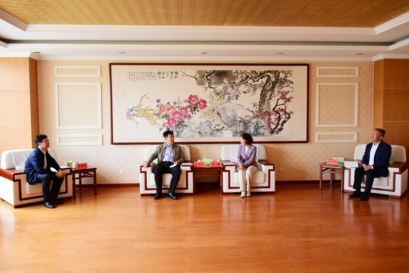 本网讯 4月13日,潍坊市委老干部局副局长、市老年大学校长张逢春一行到访我校,洽谈合作办学事宜。学校党委副书记徐梅会见客人,统战部负责人、民进潍坊学院支部主委参会。