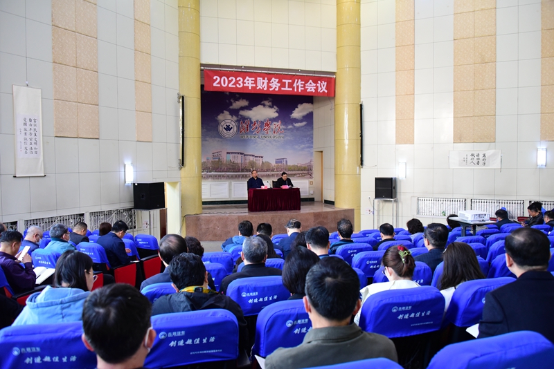 本网讯 4月20日,学校在行政楼一楼报告厅召开2023年财务工作会议,校长冯滨鲁主持会议并讲话。