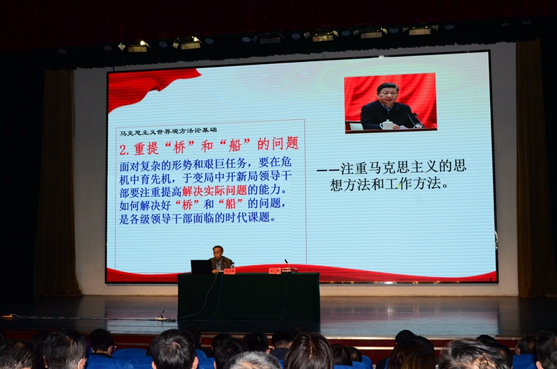 本网讯 为推动学校学习贯彻习近平新时代中国特色社会主义思想主题教育走深走实,4月25日,学校邀请市委党校范天峰副教授作专题辅导报告。党委副书记徐梅主持报告会。学校党委书记李东,党委委员王旭升、王建新、王成端、李英德、李连成、单振涛,全体处级干部,各党支部书记参加报告会。