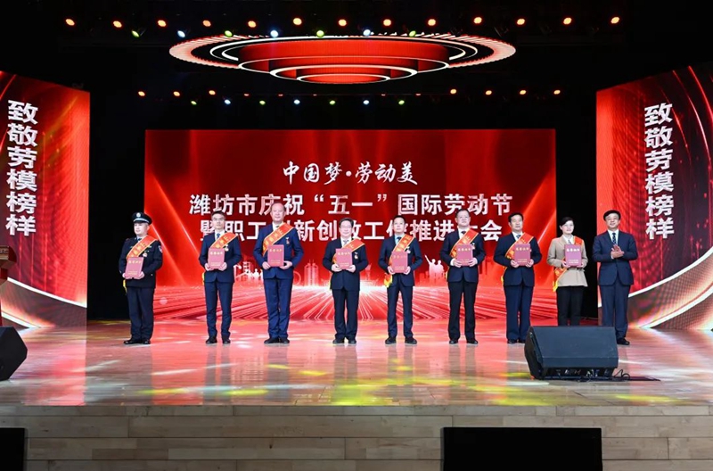 4月27日下午,潍坊市召开表彰大会,市委书记刘运为在全国及省、市获奖先进单位、集体和个人代表颁奖。李永胜上台领奖,并作为获奖代表发言。