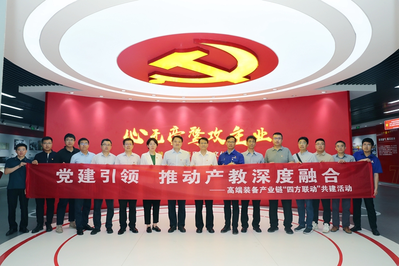 “四方联动”是省教育厅与省工业和信息化厅联合开展的以“党建引领 推动产教深度融合”为主题的基层党组织共建活动,旨在全面贯彻党的二十大精神,深入开展学习贯彻习近平新时代中国特色社会主义思想主题教育,坚持党建引领,充分发挥省教育厅、省工信厅、高等院校、链主企业四方基层党支部的战斗堡垒作用,着力推动解决高校服务地方发展成效不足的问题,推动产教深度融合,更好服务我省绿色低碳高质量发展先行区建设。根据活动方案,省教育厅、省工业和信息化厅、高等院校与“链主”企业四方基层党组织,采取“1+1+1+1”模式,通过联合主题党日活动、联合专题党课、联合考察调研等形式,深入到产业园区、高校实验室等生产与科研一线开展共建活动,着力强化四方交流协作,推动教育链、人才链、创新链、产业链深度融合,提升我省高校人才培养质量和科技创新能力,赋能我省标志性产业链高质量发展。在高端装备产业链,我校科研处党支部、机械与自动化学院(潍柴产业学院)教师第二党支部与省工业和信息化厅装备产业处党支部、省教育厅科学技术处党支部、潍柴动力人力资源部党支部匹配组成 “四方联动”党支部。