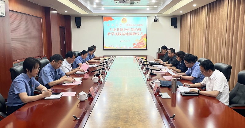 会上,潘祎介绍了临朐县及临朐县检察院情况。徐梅介绍了潍坊学院的发展历程及高水平应用型大学建设情况。政法学院负责人介绍了政法学院师资力量、学生培养以及服务地方法治建设等情况。双方表示,将充分利用好检校合作平台,以实务促教学,为在校师生科研交流、参观考察、学习实践提供有力支持,促进检察实务与法学教育双向交流、高质量发展,不断提升法治人才培养水平,为高水平应用型大学建设提供实践支撑。随后,双方就专业合作共建单位、教学实践基地、就业实习基地进行签约及授牌。