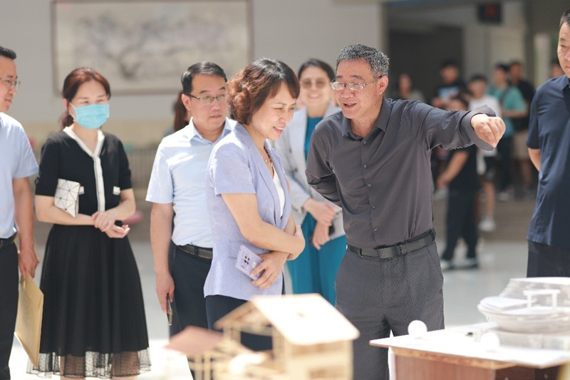 本网讯 为深化教学改革、提高人才培养质量、创新人才培养模式,增强学生实际动手能力和专业基本技能,6月14日,学校“鲁班”建筑模型作品展在图书馆一楼广场举行。学校党委副书记徐梅,党委委员、宣传部部长单振涛参观了展览。