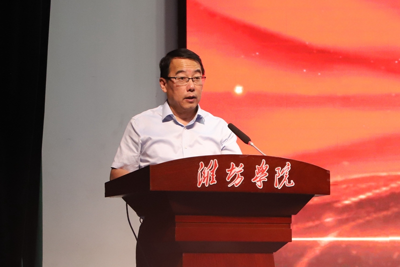 “晒福·未来之星”奖学金获得者机械与自动化学院(潍柴产业学院)陈立宾、“十佳优秀学子”奖获得者政法学院虞晴、“辅导员素质能力大赛”获奖者物理与电子信息学院辅导员王树森、学风建设优秀单位化学化工与环境工程学院党总支书记王元森依次作交流发言。