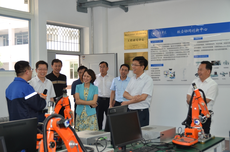 徐梅陪同于红波一行参观了学校科教产融合创新中心和智能制造工程实训中心,双方就学科专业设置服务城市经济社会发展等工作进行了交流探讨。
