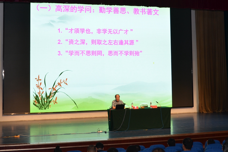 韩延明教授以《论新时代高校教师师德师风与教学艺术》为题,围绕着“五个高”:即高深的学问、高尚的品德、高明的教法、高超的口才、高雅的教态,深刻阐释了怎样做一名德才兼备、德艺双馨的高品位教师。整个报告站位高远、内容丰富,对学校巩固师德建设成果、全面提升教师能力素养具有重要的指导意义。