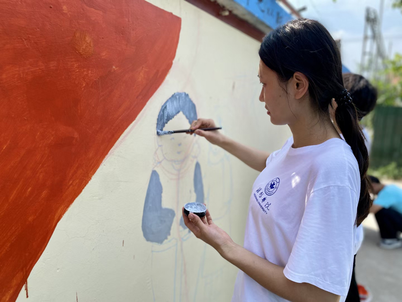 据了解,今年,我校美术学院“七色花”大学生志愿者服务队成功入围国家级专项团队“七彩假期”志愿服务团队,本次墙绘活动是团队暑期“三下乡”社会实践的重要组成部分。