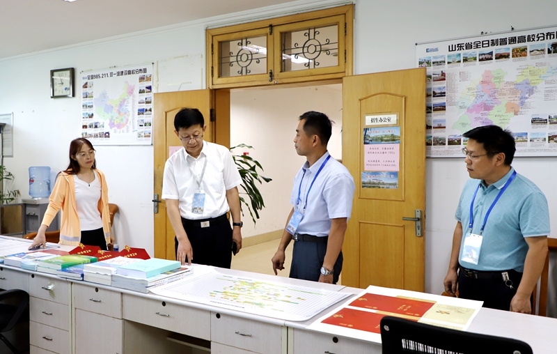 王建新详细了解和查看了录取现场各环节工作情况、内控监督制度建设、现场安全防控和招生工作纪律执行情况,听取了教务处招生工作同志对我校今年普通高考招生录取工作总体时间安排、当前进展情况汇报。