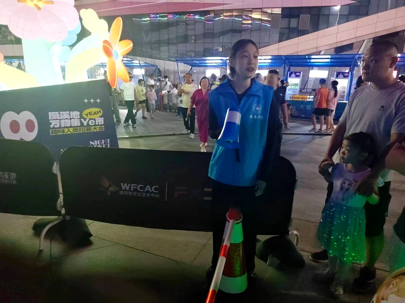 本网讯 近日,潍坊市凤溪地万物集夜市开幕,每当夜幕降临,夜市人流量迅速增加。为了给前来游玩和消费的市民游客提供舒心、有序、干净的消费环境,音乐学院爱乐志愿服务团队的志愿者们来到凤溪地万物集夜市开展为期5天的“文明行动进夜市”志愿服务活动。
