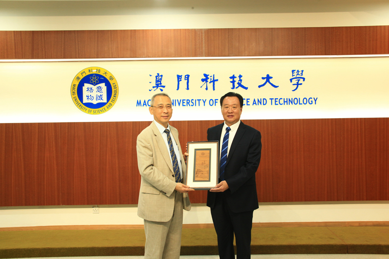澳门科技大学副校长姜志宏向李东赠送纪念品