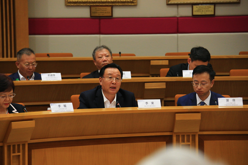 在香港浸会大学,李东从建设国内一流高水平应用型大学,培养富有创新实践能力的高素质应用型人才,坚持校城融合、服务地方、协同发展等三个维度介绍了学校情况。他提出,学校将全方位学习浸大的办学理念、创新做法和成功经验,在人才培养、科学研究、服务社会等方面深入推进两校务实交流合作。香港浸会大学校长卫炳江介绍了浸大在全人教育、教学研究、科研成果转化和文化艺术教育发展等方面取得的成绩,表达了进一步加深双方交流合作的愿望。