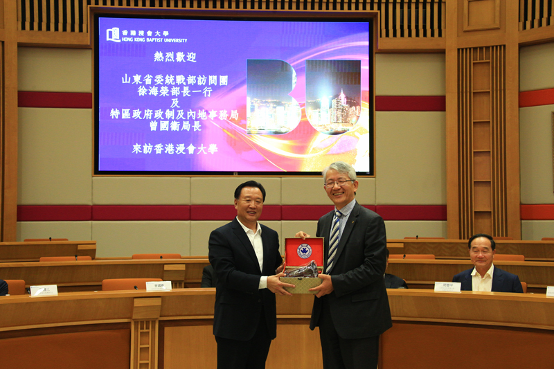 李东书记向香港浸会大学协理副校长卞兆祥赠送纪念品