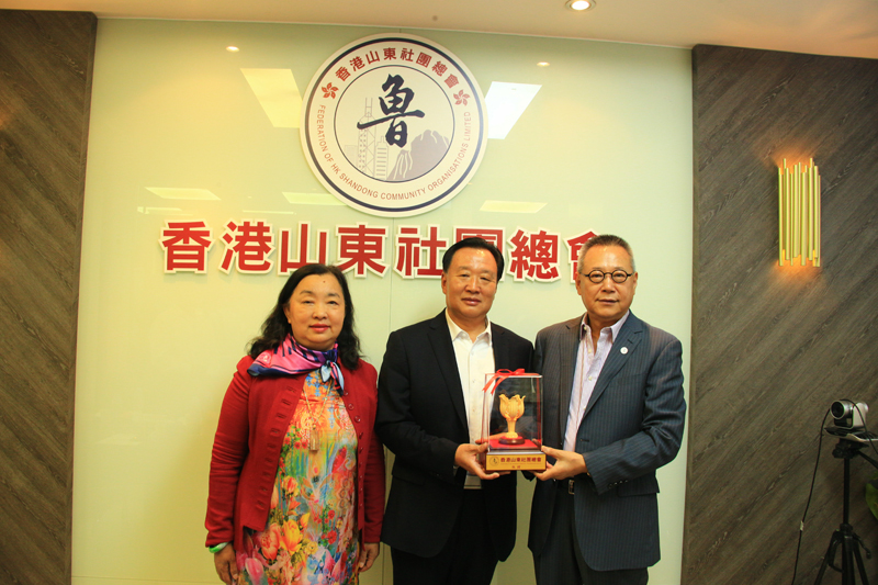 香港山东社团总会执行会长王家惠向李东赠送纪念品