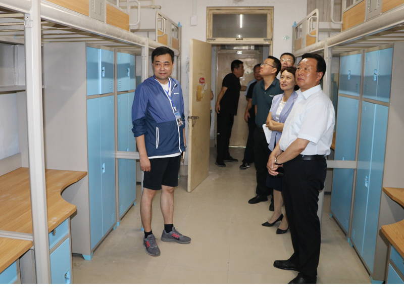 本网讯 8月8日,学校党委书记李东,党委副书记徐梅,副校长王旭升,副校长王成端到第一餐厅、第二餐厅、学生公寓改造现场,指导检查餐厅基础设施改造、学生公寓“上床下桌”改造项目进展情况,并看望慰问有关工作人员。