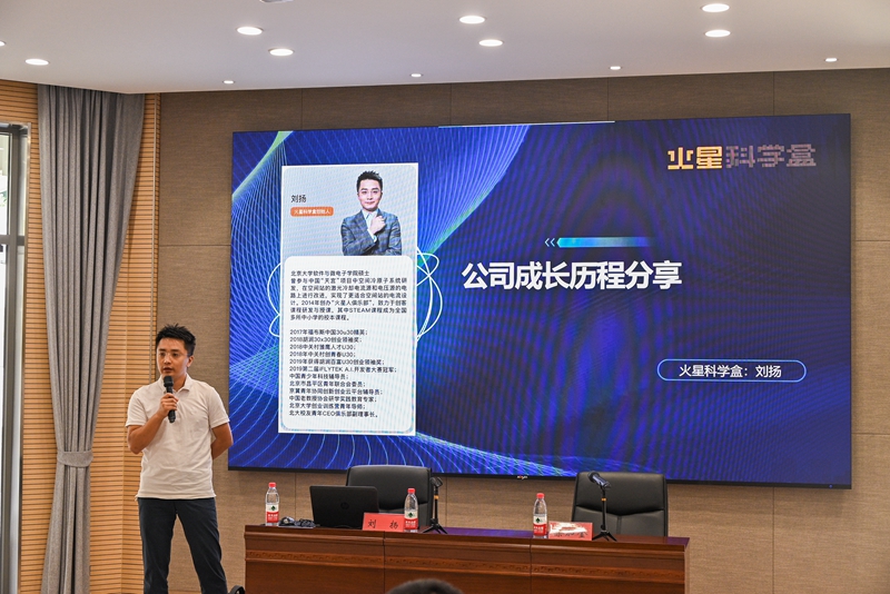 刘扬与同学们进行分享交流,了解同学们的职业发展理念、期望和职业规划,向同学们介绍了自己的创业初衷,分享了企业的创业历程,详细讲解了火星科学盒的商业模式、发展历程、产品技术、团队资质、市场分析、社会价值、企业文化和取得的成绩,鼓励同学们要立足长远、勤于学习、勇于挑战,锚定目标坚持不懈,成就更好的奋斗人生。宣讲会上,公司人事经理刘宁详细介绍了此次招聘涵盖商务管培生机器人教师、少儿编程教师等多个岗位,在北京和潍坊等多个工作地点,介绍了薪资待遇和发展前景,并组织了现场招聘报名。