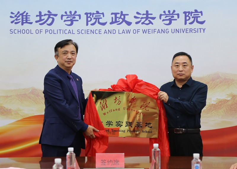 仪式上,政法学院有关负责同志分别与众成清泰(潍坊)律师事务所签订“教学实践基地协议”并揭牌,同时众成清泰(潍坊)律师事务所向学校捐赠10万元作为教育基金,助力法学教育教学的发展。