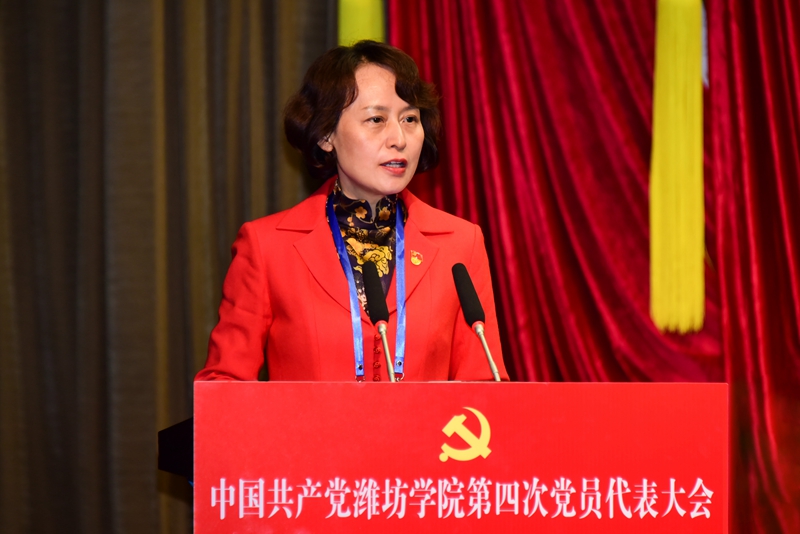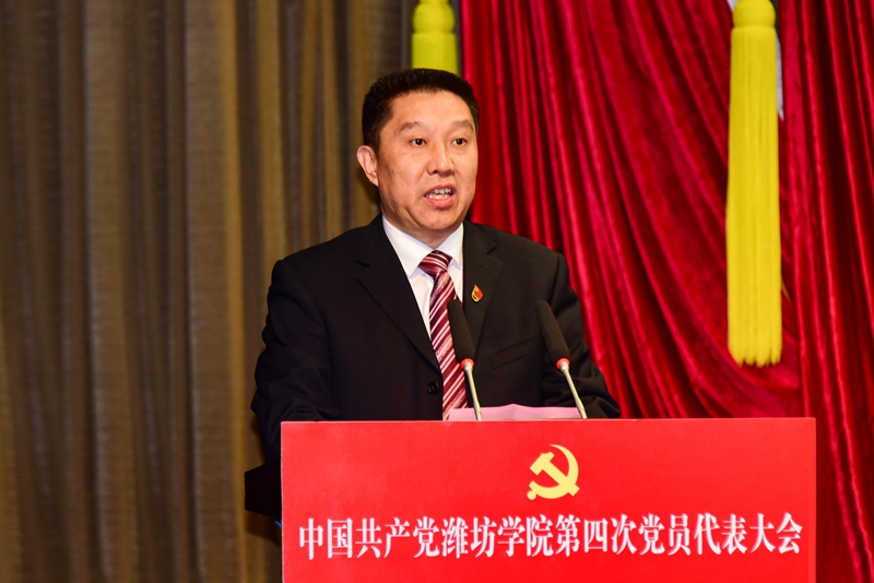 本网讯 凝心聚力求突破,挺膺担当铸新篇。10月28日上午,中国共产党潍坊学院第四次党员代表大会在学校图书馆报告厅隆重开幕。中共潍坊市委书记、市人大常委会主任刘运同志出席。中共山东省委教育工委委员、省教育厅党组成员、副厅长仲红波同志,中共潍坊市委常委、宣传部部长、市委教育工委书记杨建华同志分别讲话。徐梅同志向大会作报告。来逢波同志主持开幕式。