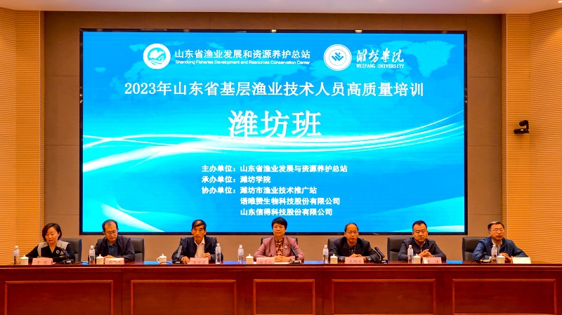 据悉,本次培训由山东省渔业发展和资源养护总站主办,潍坊学院承办,潍坊市渔业技术推广站、南京诺唯赞生物科技股份有限公司、山东信得科技股份有限公司协办。培训共安排10余场专题讲座及案例报告,涵盖水产种业质量提升、生态健康养殖模式示范推广、水产养殖减抗替抗、智慧渔业、休闲渔业、水产电商等内容,为推动我省水产养殖业转型升级和渔业一二三产业融合发展方面贡献了“潍院智慧”和“潍坊方案”。