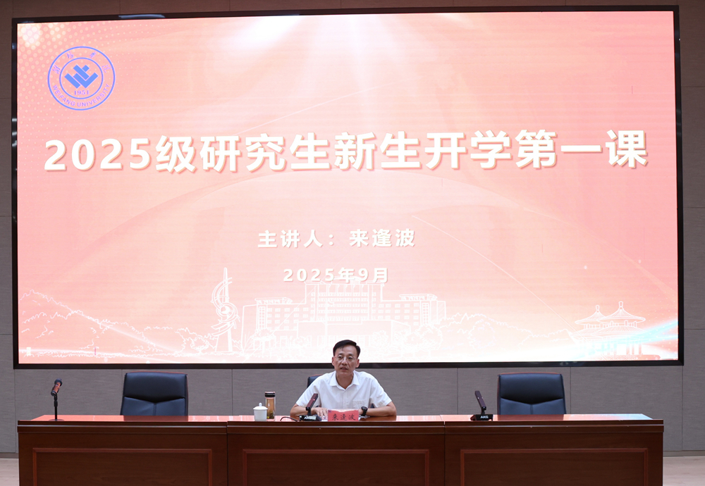 本网讯 9月17日,学校党委书记来逢波为学校首届硕士研究生讲授开学第一课,引导新生明确学术方向、锚定成长目标,开启研究生阶段新征程。