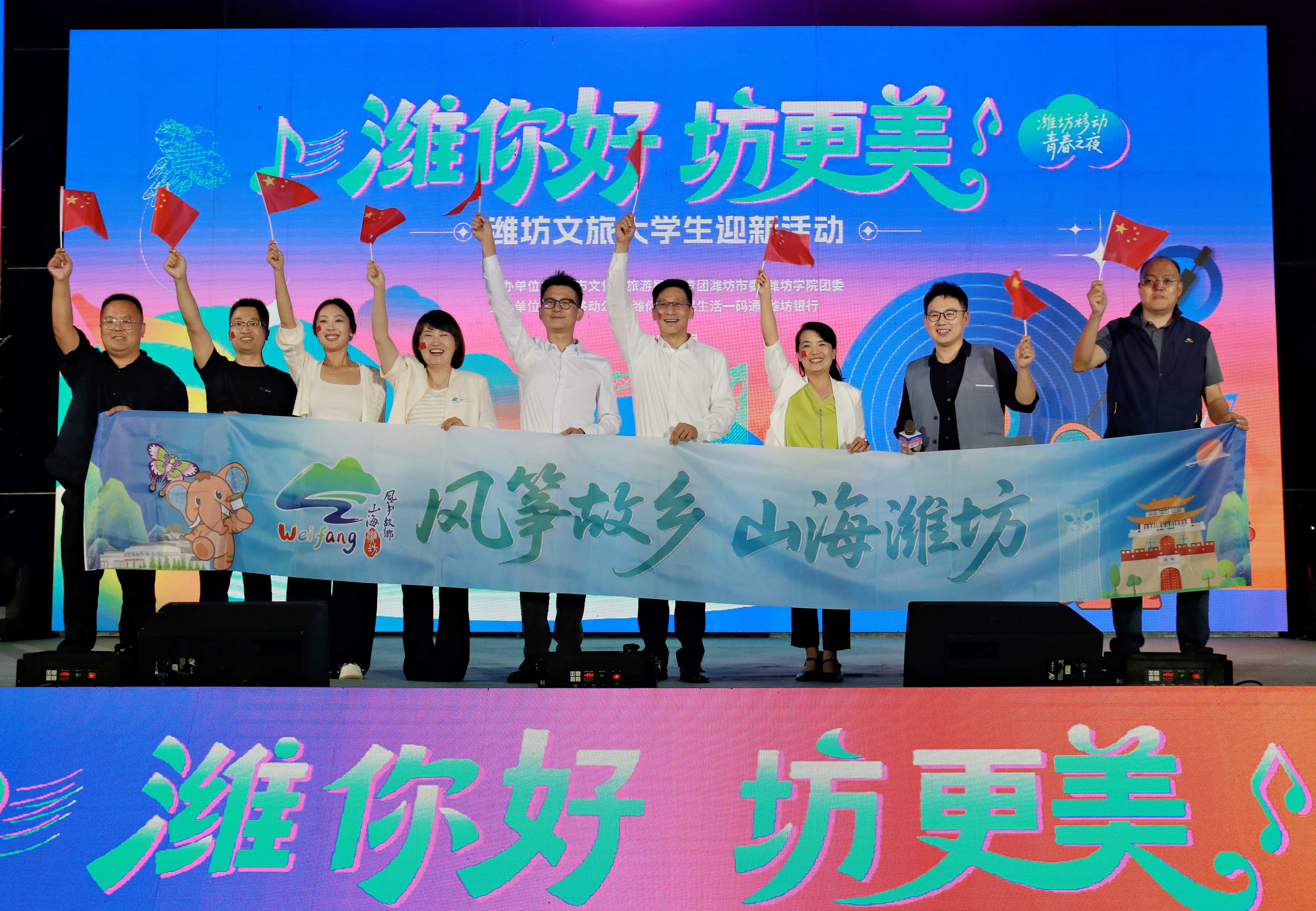 本网讯 9月29日,由潍坊市文化和旅游局、共青团潍坊市委与学校联合主办的“潍你好 坊更美”文旅系列迎新活动,在学校体育场举行。学校党委委员、副校长任立春,党委委员、纪委书记、监察专员武玉杰,潍坊市文化和旅游局、共青团潍坊市委等单位相关负责同志出席活动。