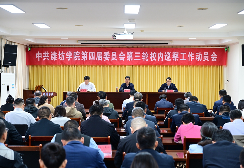 本网讯 10月11日,学校召开中共潍坊学院第四届委员会第三轮巡察工作动员大会,学校党委副书记、党委巡察工作领导小组副组长王守全出席会议并讲话,会议由学校纪委书记、监察专员、党委巡察工作领导小组副组长武玉杰主持。