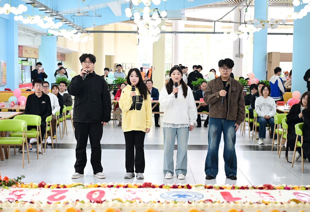 校领导与新生代表共同切开校庆蛋糕,并为过生日的学生代表赠送礼物。仪式结束后,师生分桌聚餐、畅谈交流,现场欢声笑语不断。此次活动以特殊时间节点为纽带,既回望学校74载栉风沐雨、薪火相传的奋斗历程,也搭建起学校与学生的情感联结,激励广大师生携手前行,共同书写学校发展与学子成长的新篇章。