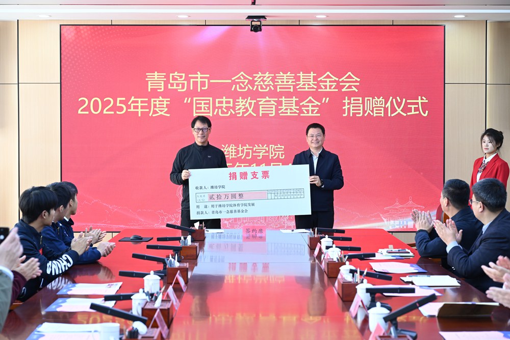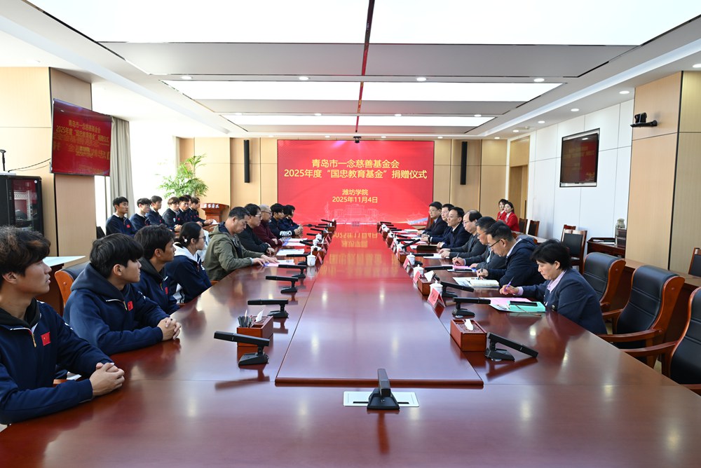 本网讯 11月4日,青岛市一念慈善基金会2025年度“国忠教育基金”捐赠仪式在学校举行。山东力威集团董事长、青岛市一念慈善基金会理事长刘国忠,青岛市一念慈善基金会秘书长王唯,学校党委书记来逢波,党委委员、副校长李英德、任立春出席仪式。