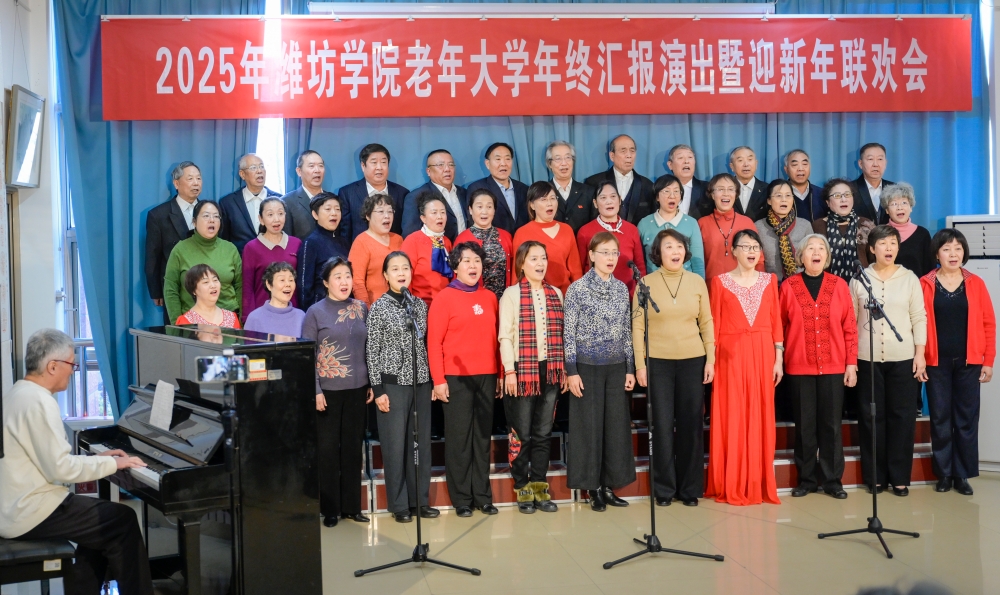 本网讯 12月25日,2025年潍坊学院老年大学年终汇报演出暨迎新年联欢会在学校老干部活动中心举办。学校老领导代表及离退休工作处党委成员、老年大学学员观看了演出。