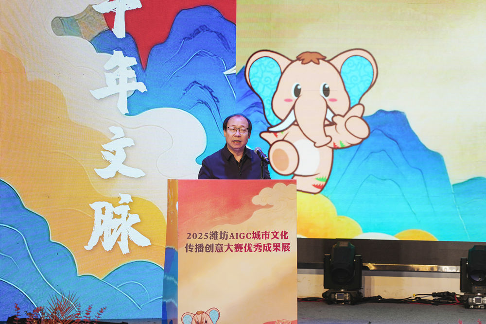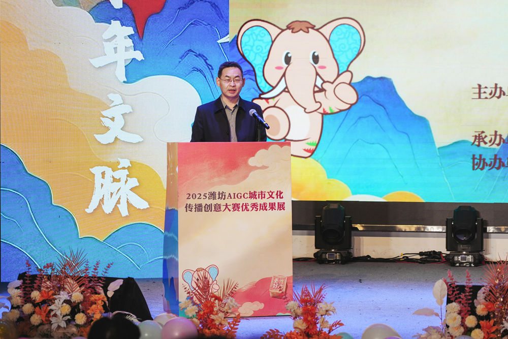李英德在致辞中表示,学校将继续发挥高校的学科与人才优势,加强与各方之间的协作,共同探索AIGC技术在文化传播领域的深度应用,为推动潍坊文化事业的繁荣发展贡献更多高校力量。 路全东在致辞中充分肯定了大赛的重要意义,他指出,本次活动不仅是优秀作品的集中展示,更是推动AIGC技术与城市文化深度融合的重要平台,为潍坊城市形象的创新传播注入了科技动能与青春活力。