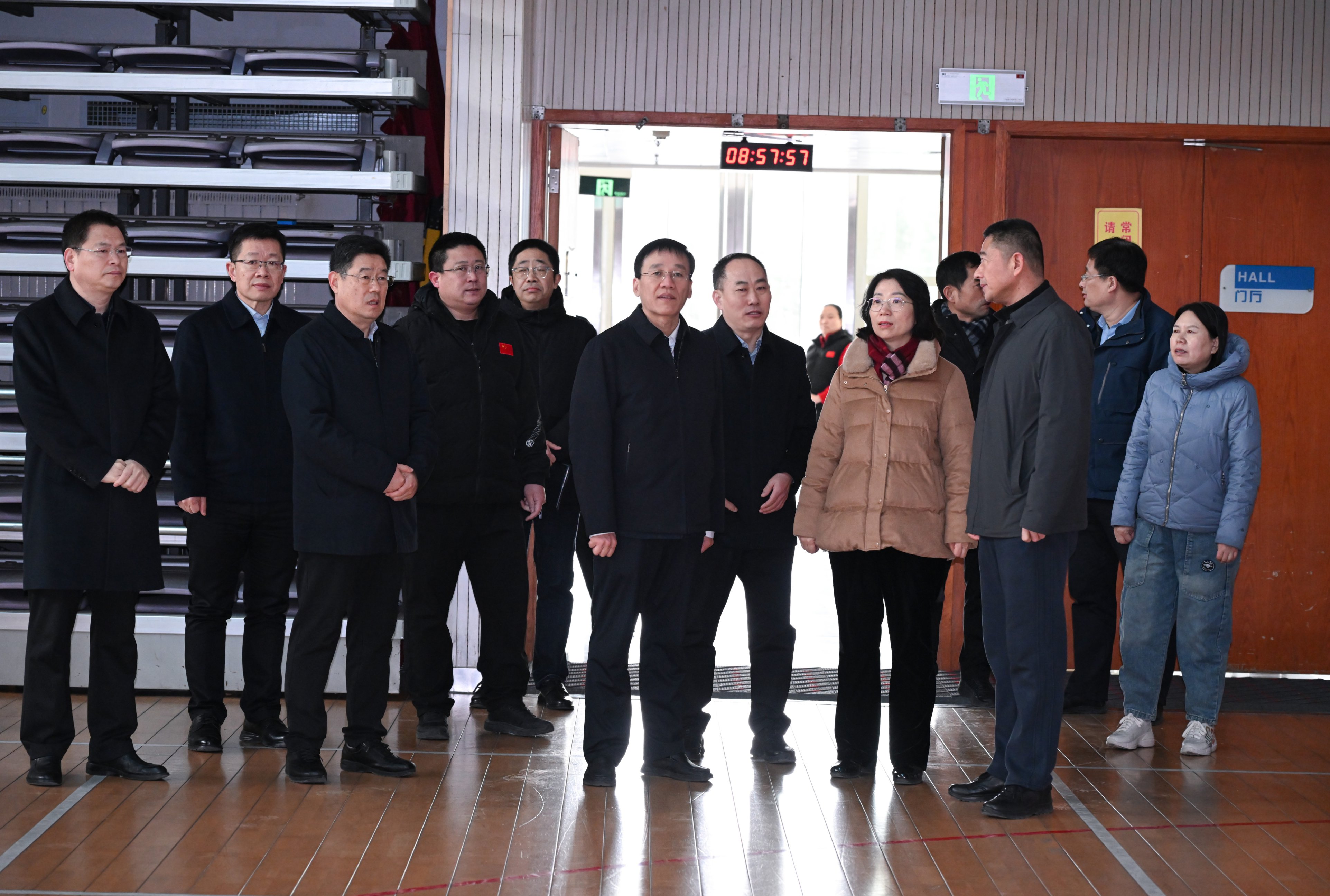 本网讯 为保障寒假期间校园安全稳定,确保留校师生平安过节,1月30日,学校党委书记来逢波,党委副书记、校长王霞带队开展校园安全大检查。党委副书记王守全,党委委员、副校长任立春参加活动。